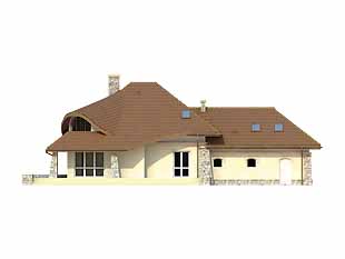 Dom mieszkalny jednorodzinny przeznaczony dla 4-5 osobowej rodziny. Łukowe elementy połaci dachu nadają domowi niepowtarzalny urok oraz charakter. Przestronne wnętrza, wygodne poddasze, garderoby w sypialniach – oto cechy użytkowe tego budynku.
