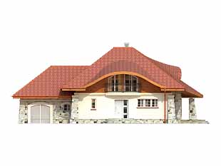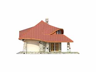 Dom mieszkalny, parterowy z użytkowym poddaszem, niepodpiwniczony. Przeznaczony dla 4 – 5-osobowej rodziny. Na parterze zaprojektowano pokój dzienny z kominkiem, aneksem jadalnym, łazienką i dodatkowy pokój dla seniora lub biuro. Na poddaszu zaprojektowano trzy pokoje, garderobę i łazienkę. Sypialnia rodziców znajduje się w owalnym wykuszu, który nadaje bryle domu niepowtarzalny charakter.