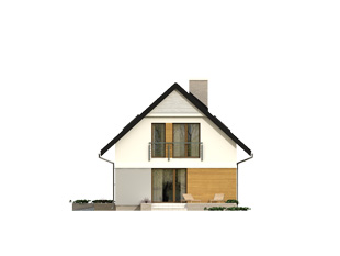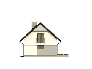 Niewielki, ale wygodny dom na wąską działkę. Prosta, nowoczesna bryła przekryta dwuspadowym dachem oraz tradycyjna technologia budowy czynią dom tanim i dostępnym. Zlokalizowana na parterze część dzienna mieści w sobie pokój dzienny z jadalnią i kuchnię, dodatkowo znajdują się tu: łazienka, kotłownia i jednostanowiskowy garaż. Na poddaszu znajdują się: cztery, dobrze doświetlone sypialnie, jedna z garderobą i łazienka. Do bryły domu przylega letni salon – rozległy taras. Dom ma niewielkie wymiary i z powodzeniem zmieści się na wąskiej działce, także z wjazdem od południa.