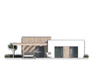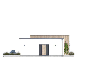 Niewielki, jednorodzinny dom parterowy odpowiadający potrzebom 3-osobowej rodziny. Optymalny układ pomieszczeń został podzielony na strefę dzienną oraz nocną. W strefie dziennej znajduje się przestronny salon z jadalnią, kuchnia ze spiżarnią oraz reprezentacyjny hol. W części nocnej znajdują się dwie sypialnie oraz łazienki.