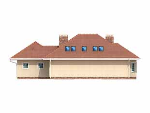 Dom jednorodzinny, parterowy z użytkowym poddaszem, wymagający dość szerokiej, ale płytkiej działki. Dom średniej wielkości z dodatkowym pokojem-gabinetem do pracy na parterze i zadaszonym tarasem dostępnym z kuchni i pokoju dziennego. Na poddaszu trzy sypialnie z łazienką i strych.