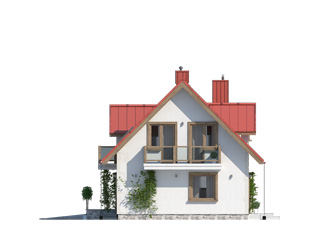 Mały dom jednorodzinny z użytkowym poddaszem i garażem w bryle budynku. Idealny dla niewielkiej rodziny.
