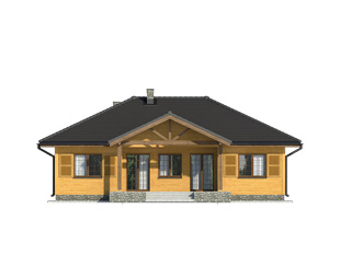 Jednorodzinny budynek mieszkalny, parterowy, niepodpiwniczony. Zawiera w sobie optymalny i pełny program dla 4-osobowej rodziny. W budynku istnieje wyraźny podział na część dzienną – salon z jadalnią oraz kuchnia i nocną, w której przewidziano 3 sypialnie i łazienkę. Atutem projektu jest duży zadaszony taras od strony ogrodu, na który prowadzą wyjścia z salonu i dwóch sypialni.