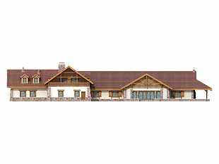Przestronny pensjonat z użytkowym poddaszem, podpiwniczony. Zaprojektowano 11 pokoi do wynajęcia, w tym: 3 pokoje na parterze przystosowane do potrzeb osób niepełnosprawnych oraz 6 pokoi i 2 apartamenty na poddaszu. Na część rekreacyjną składa się bar oraz sala bankietowa o powierzchni 370 m2 z antresolą i rozległym tarasem.