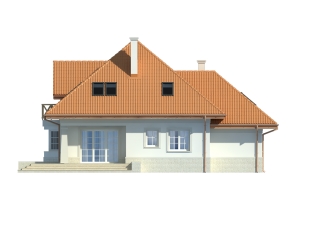 Dom mieszkalny jednorodzinny w użytkowym poddaszem i jednostanowiskowym garażem. Dm przeznaczony dla 5 - 6-osobowej rodziny. Na parterze znajduje się część dzienna oraz dodatkowy pokój (o funkcji sypialni bądź gabinetu). Na poddaszu zaprojektowano część nocną: cztery sypialnie, łazienkę, pralnię oraz garderobę.